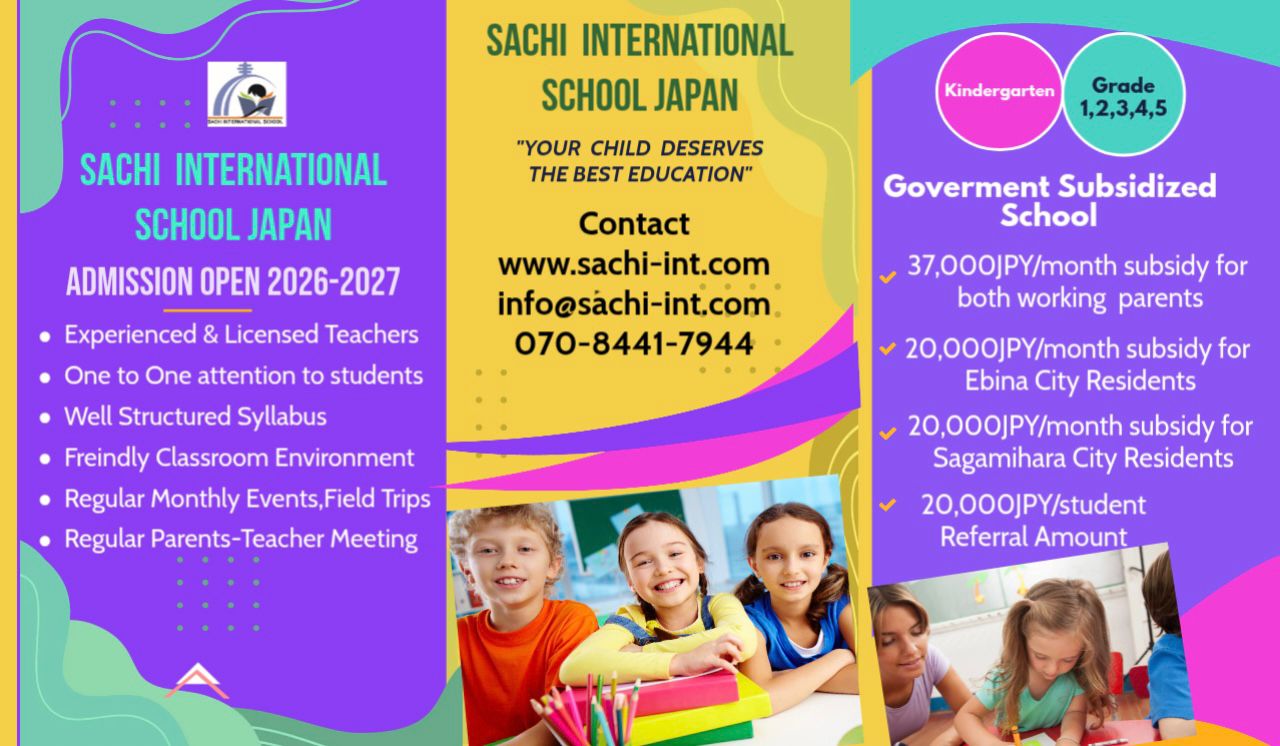 Sachi International School (SIS) ,established in the year 2015, is focused on academic growth in Kanagawa, Japan. We provide a high-level bilingual education class in both English and Japanese taught by native qualified teachers. We accept the enrollment of children of the ages from 3 years to 8 years old.